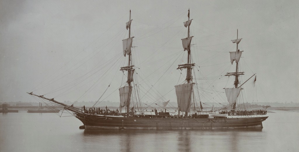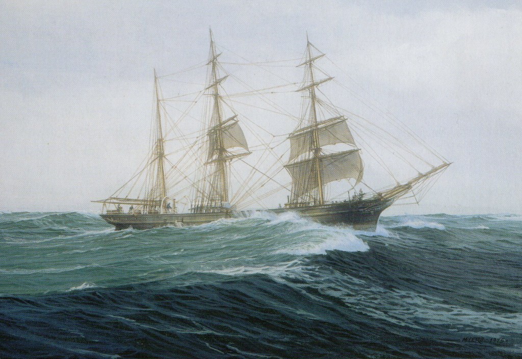 After a general grounding in art, Oswald Brierly went to Plymouth to study naval architecture and rigging. Then in 1841, he started on a voyage to Australia with his friend Benjamin Boyd in the latter’s yacht Wanderer. Boyd established a new settlement he named Boydtown in southern New South Wales, where Brierly managed his whaling operations until 1848. Brierly Point near Boydtown, commemorates his connection with that new settlement.