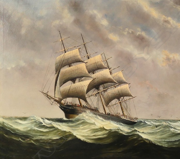 Brierly contributed about two hundred water-colours to the Royal Water-colour Society’s exhibitions. These were, in part, founded on his early working life and travel experiences. The most characteristic subjects of his later period were historical. The first of these was ‘The Retreat of the Spanish Armada’ (Royal Academy, 1871). This was followed by ‘Drake taking the Capitana to Torbay’ (Royal Water-colour Society, 1872), and many other subjects from the history of the Spanish Armada and other stirring incidents of the Elizabethan age.