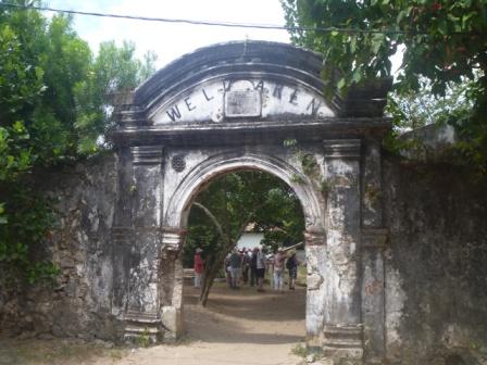 planters on Ai. We passed through its impressive entrance gate, and the inscription over the gate tells us it was built by Paulus van den Broeke in 1754. Inside the perk are the nutmeg trees and the remains of the old Dutch buildings