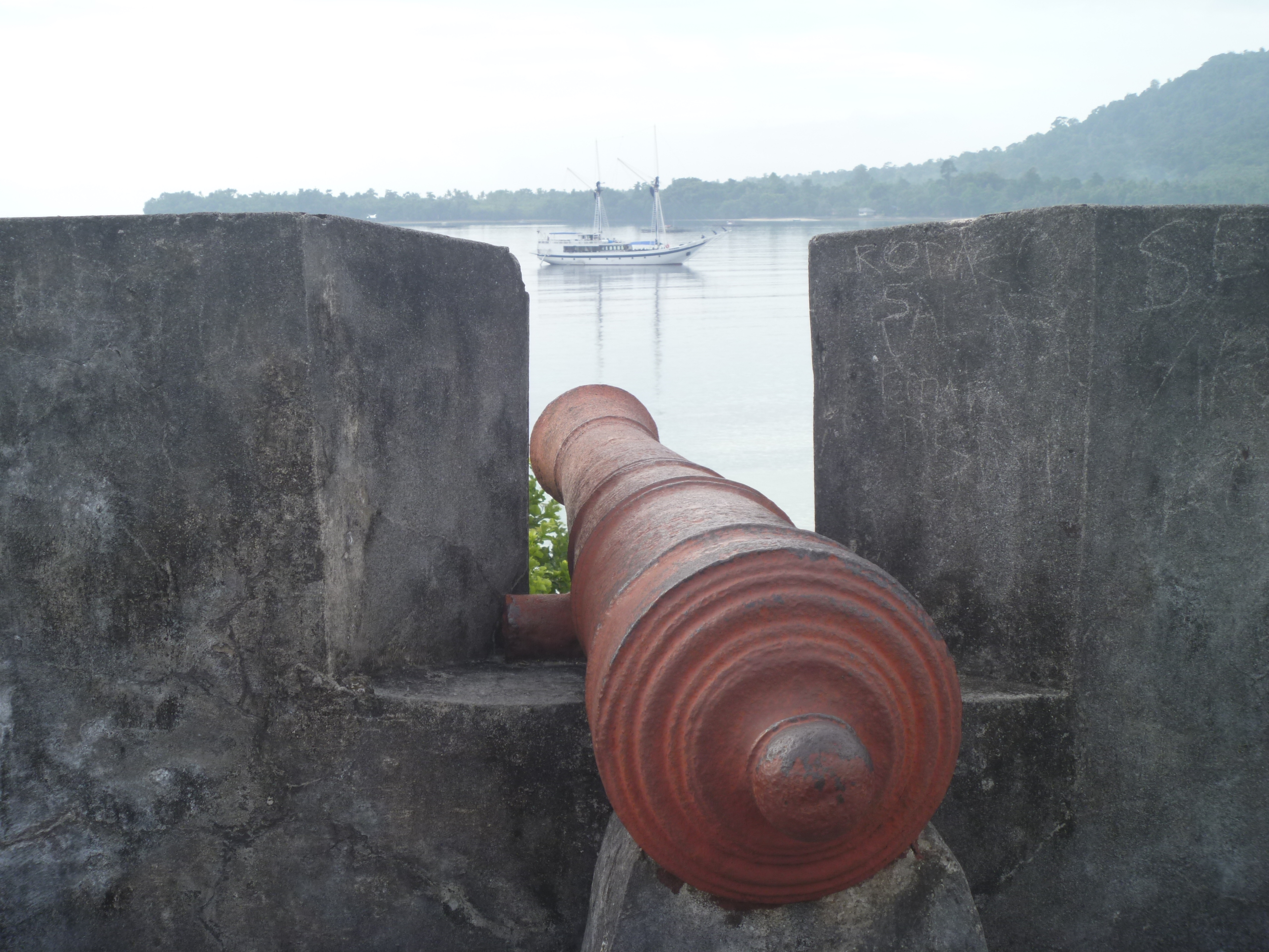 017Saparua is the largest and most populous of the Lease islands, here we landed on a nice sandy beach next to Fort Duursted and were greeted by a Swiss lady who was staying in one of the beachside cabins.  Fort Duursted has been almost completely restored but has a tragic history. Built to protect the VOC clove monopoly in 1676 by Arnold de Vlaming, it was attacked after a local uprising led by Kapitan Pattimura in 1817, and nearly all the Dutch inside the fort were killed including the Resident, Van de Berg, and only his young son was spared.