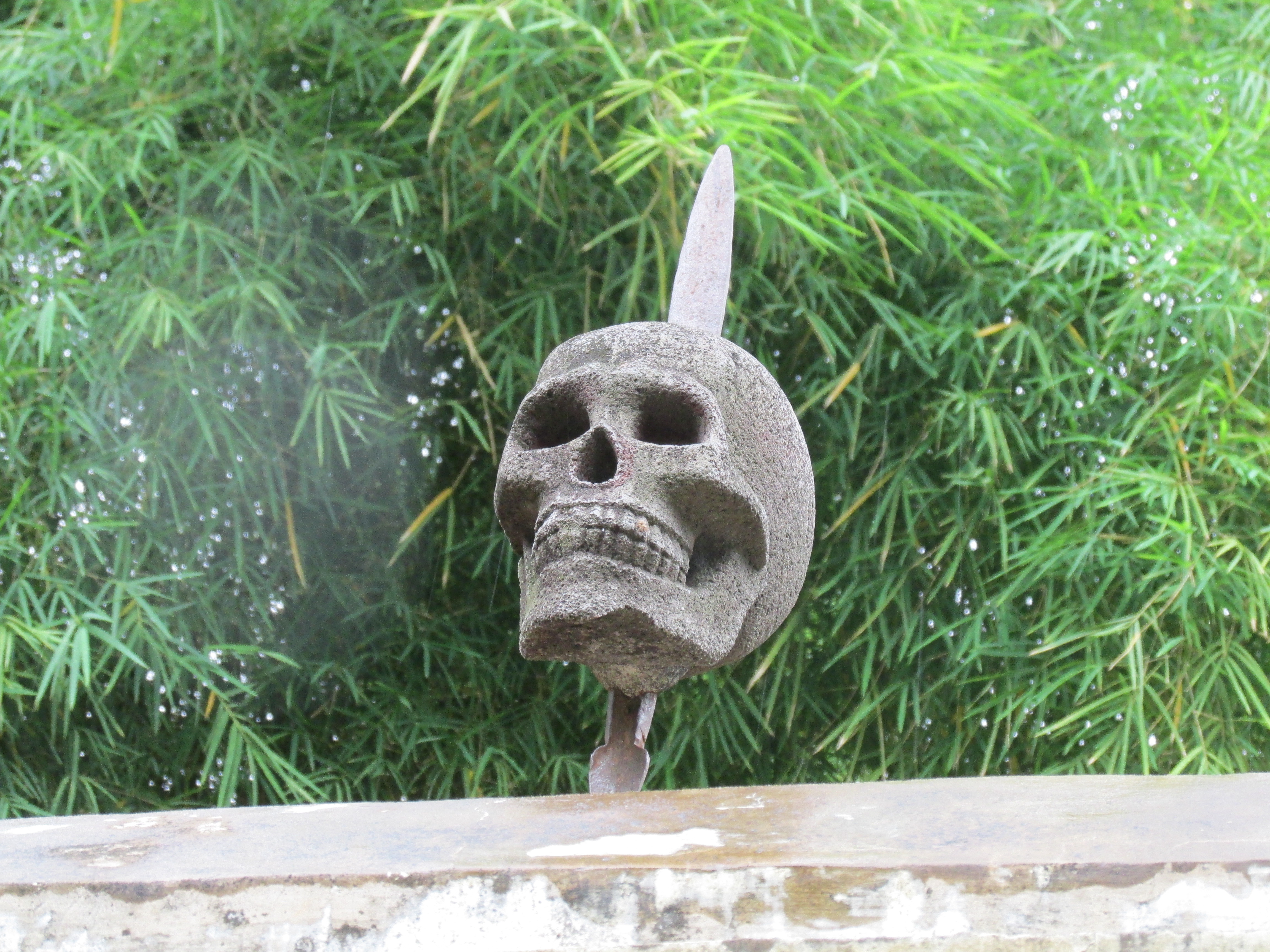The tombstone of Peter Erberveld has been relocated from its original site on Jalan Pangeran Jayakarta (Near Gereja Sion or the Portuguese Church) to Taman Prasasti (The Garden of Tombstones) in Tanah Abang. The spike through the skull is a graphic reminder of his fate and the tombstone reads: