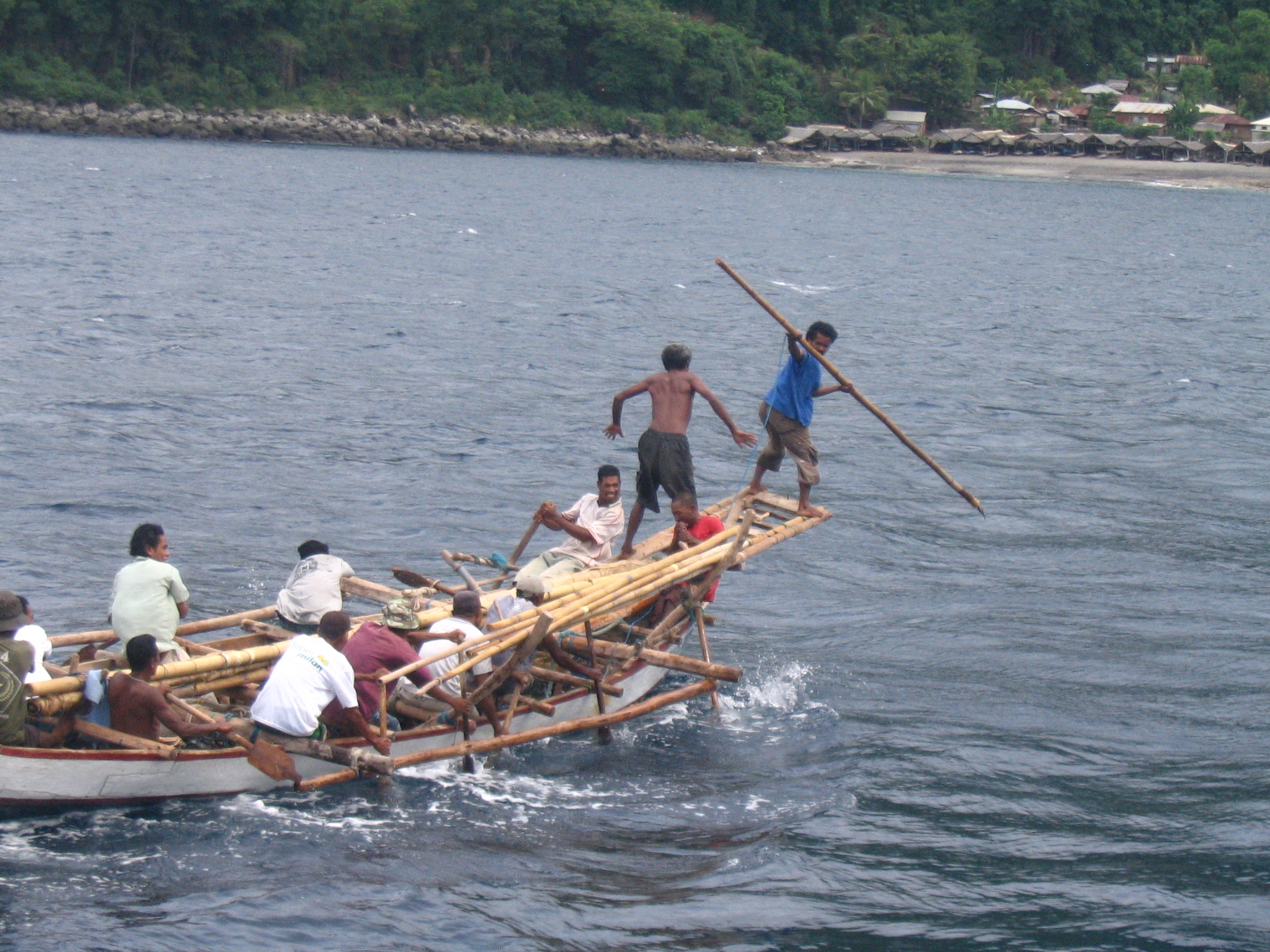 Today we arrive in Lamalera, island of Lembata, which is one of the two remaining whaling villages in Indonesia. Bordering the Timor Straits, the village is in an area long recognized as hunting-grounds on the nineteenth century British and American whaling voyages. Since at least 1836 these villages have taken various species of whales and yet today, these traditions remain available to observe. On the beach we will see the small craft for the hunting of the sperm whales and perhaps preparation for their hunt if whales are in the vicinity. This small-scale hunting (no more than 25 per year) is considered sustainable, and the local economy has some dependency upon it. We might join a short sailing on of one of the boats, admiring the harpoonist standing on the edge of the bowsprit. In the afternoon, we begin our sail to Alor.