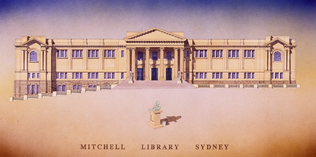 North facade of the Mitchell Library, drawn by Simon Fieldhouse
