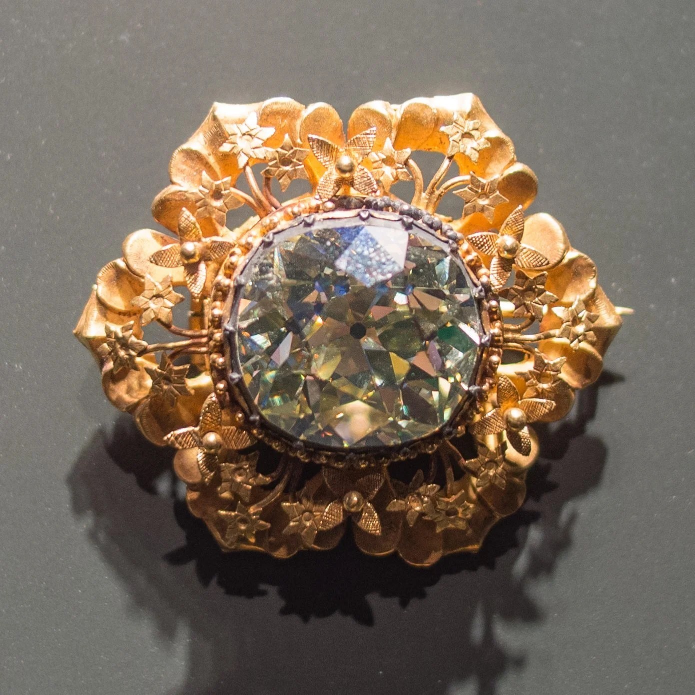 The Lombok royal treasure, seized by the Dutch, included 230 kg of gold, 7,000 kg of silver, and many items of jewellery, the most famous being a 75-carat diamond. This 21 x 19mm diamond is set in a case decorated with flower and leaf motifs, and has been described by Dutch historian Iwald Vanvugt as the largest sparkling stone in the world.